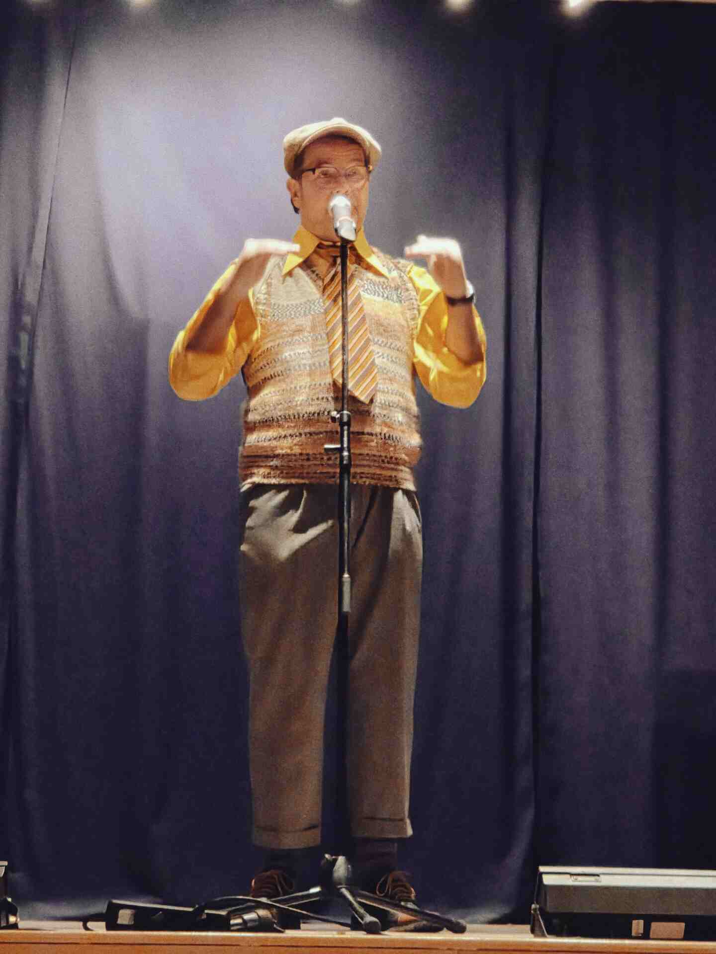 Das Oberdorf feierte auch seine Originale im Hier und Jetzt. Etwa Dennis Lienkamp. Seit mittlerweile 20 Jahren im Unternehmen tätig und nach der Ära mit niederländischem Besitzer inzwischen dienstältester Mitarbeiter der Gaststätte Franz, nahm er das Publikum mit auf eine humorvolle Reise durch seinen Arbeitsalltag. Nach dem legendären „Oranjemarkt XXL“ führte ihn sein Weg vom Business Development zum sprichwörtlichen „Mädchen für alles“. Besonders schmunzeln ließ er das Publikum mit der Bemerkung, dass sein Chef Hendrik Schöpker beim bloßen Wort „Festival“ inzwischen ein unregelmäßiges Zucken unterm Auge bekomme.